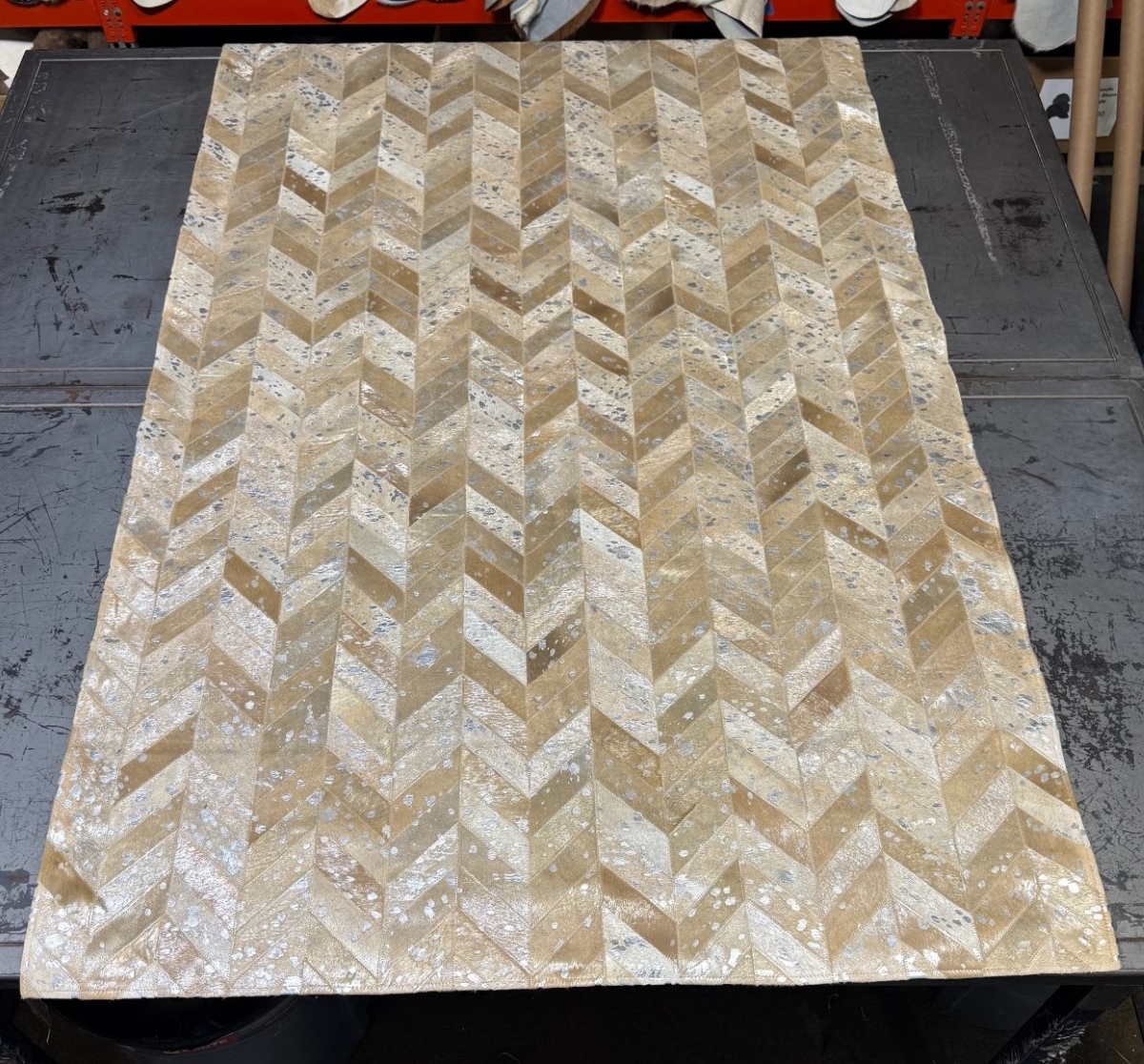 5x8 Silver on Tan Chevron